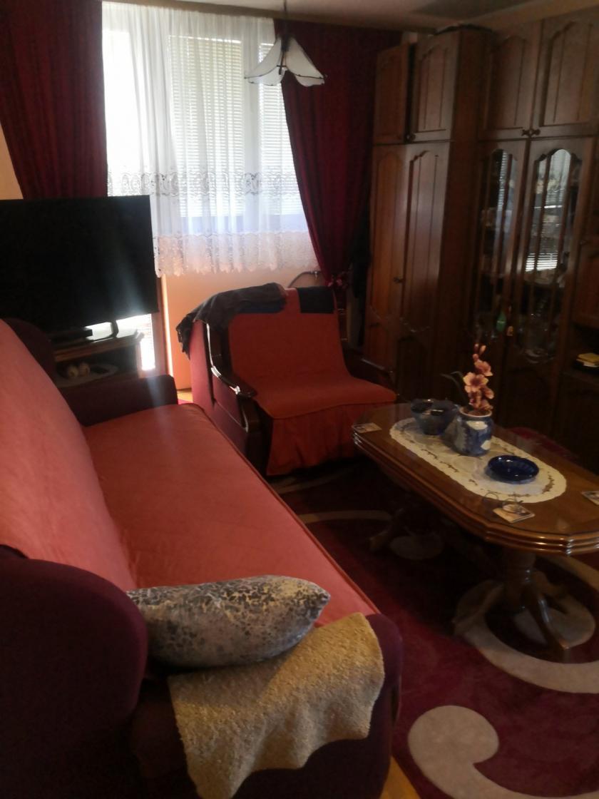 Dvosoban stan na drugom spratu, grejanje na gas, zgrada ima lift. Struktura / predsoblje, kupatilo, kuhinja sa trpezarijom, dnevna soba, spavaća soba, 2 terase/. Stanu pripada podrum. Stan je u blizini više marketa i fakulteta.